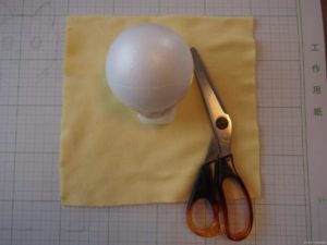 布と綿だけで作ることを考えていましたが、私が学生時代に発泡スチロールで作った糸あやつり人形がとても可愛かったので、今回のパペットも頭部は発泡スチロールで作ってみることにしました。